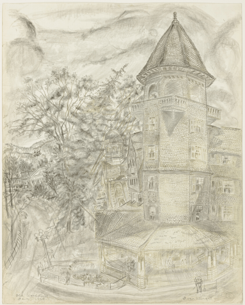 A rustic, lamp-shaped inn. Busy and brightly-lit all hours of the night. A constant, electrical buzzing hums from within.