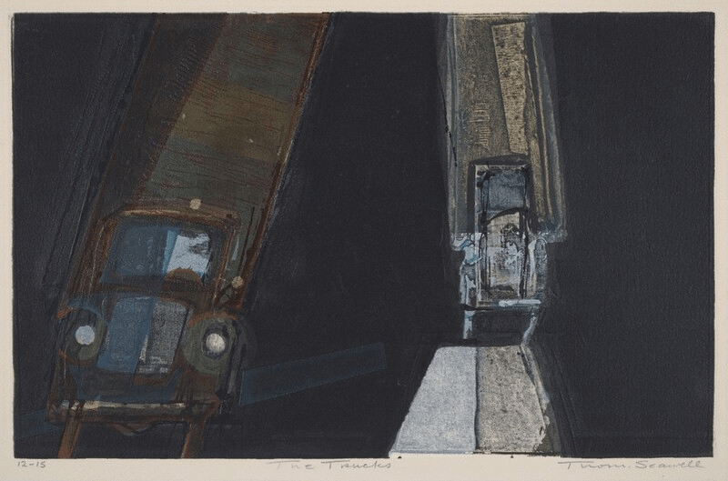 As they follow red taillights they see bright orange embers flash and fade into the turbulent mist falling from the lorry. There are two people in there, at least. A sound starts to haunt their radio; after more than an hour the voice becomes all too recognizable.